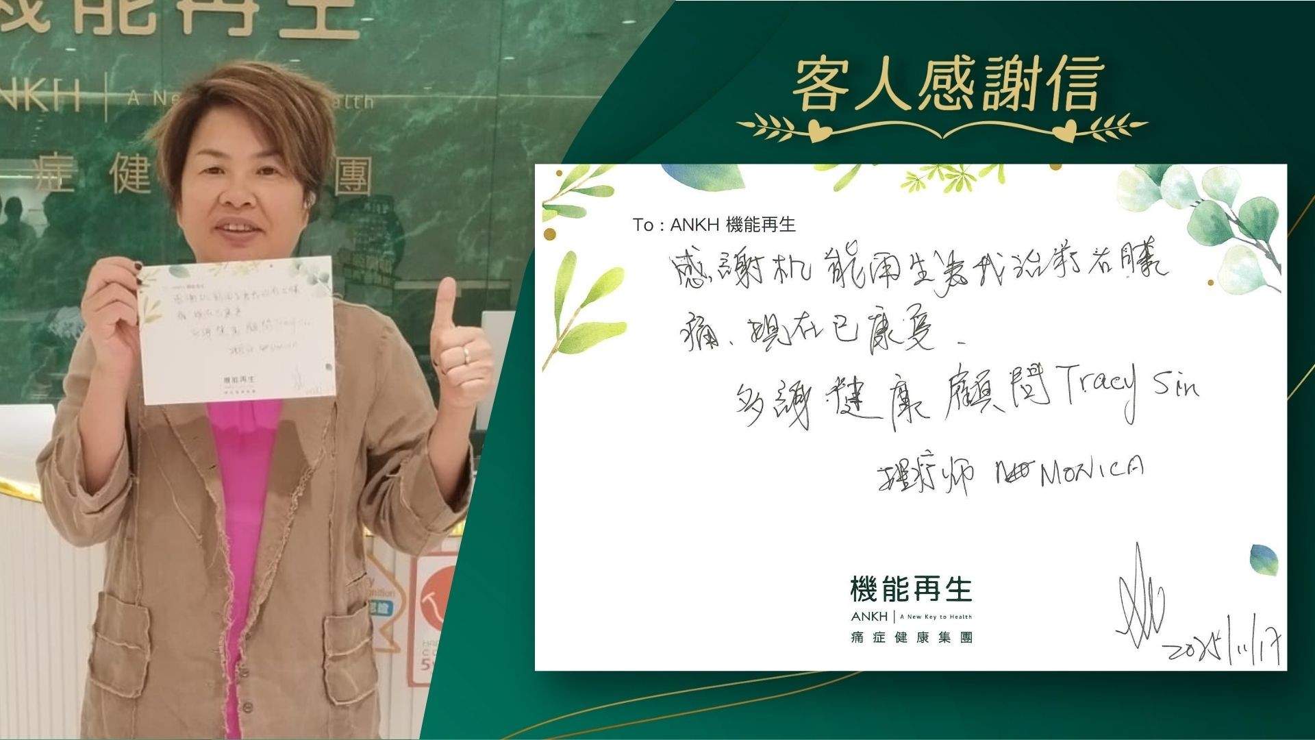 感謝機能再生為我理療右膝痛,現在已好轉。 多謝健康顧問和理療師。