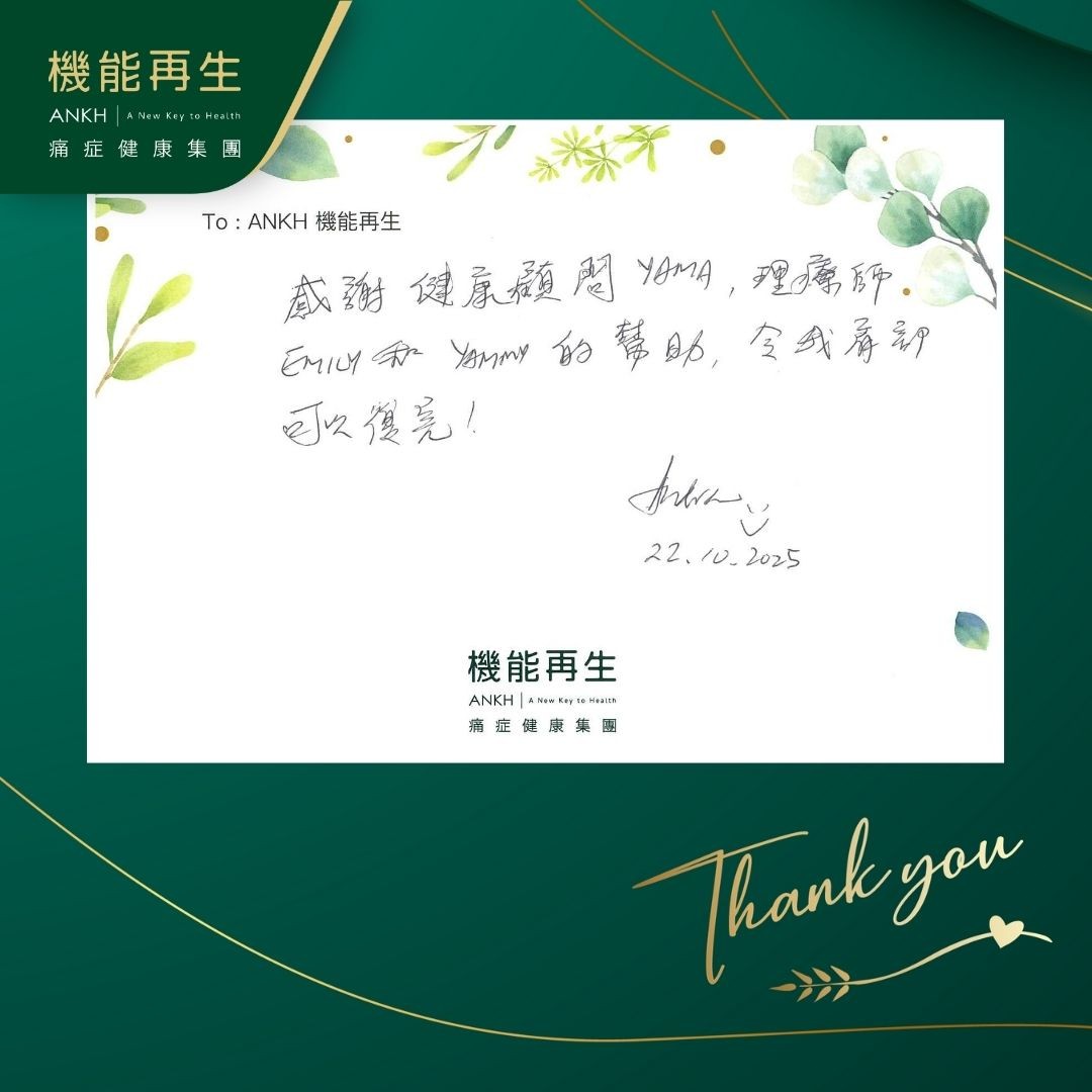 感謝健康顧問、理療師的幫助,令我肩部可以復原!