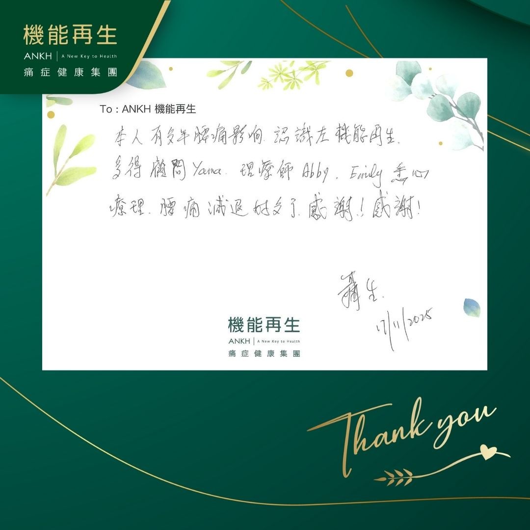 本人有多年腰痛影響,認識咗機能再生,多得健康顧問、理療師為我悉心理療,腰痛減退好多了,感謝!感謝!