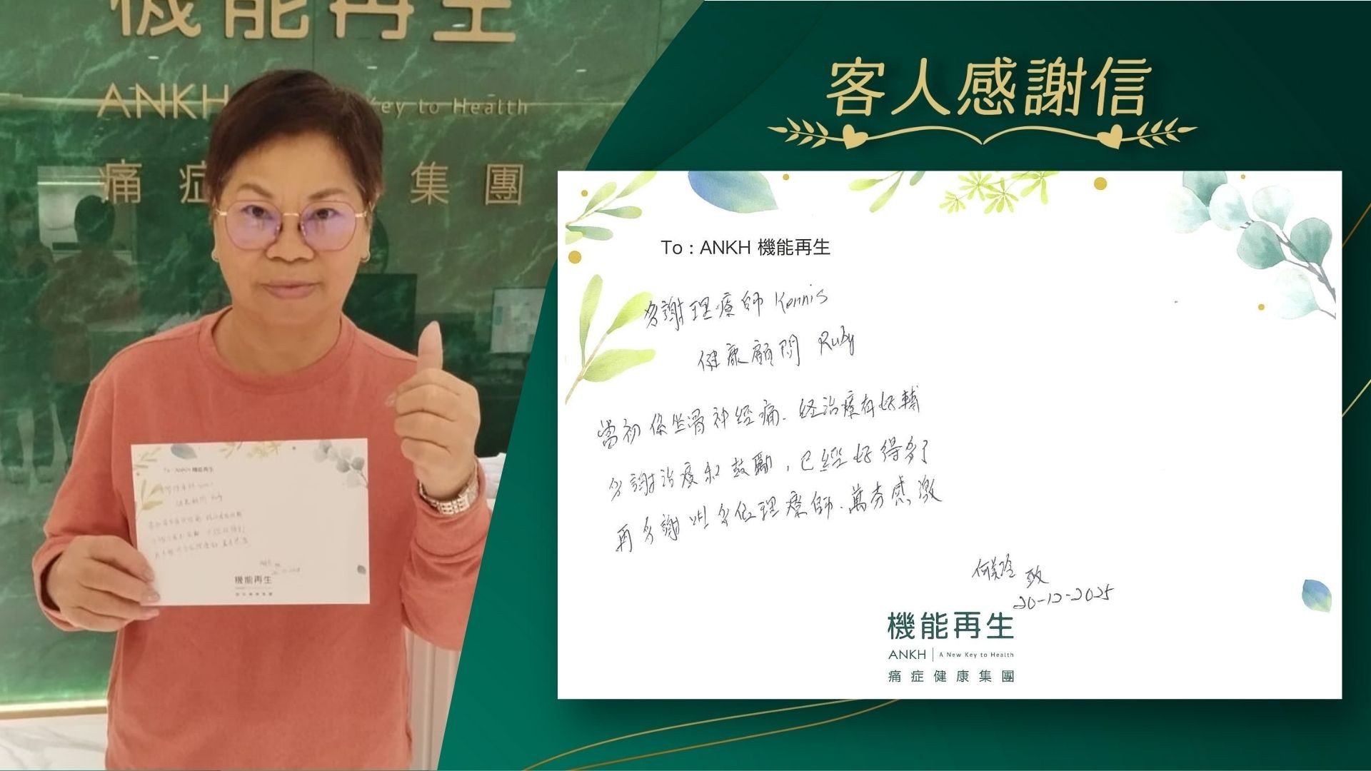 多謝理療師、健康顧問,當初係坐骨痛,經理療有好轉,多謝理療和鼓勵,已經好得多了,再多謝咁多位理療師,萬分感激!